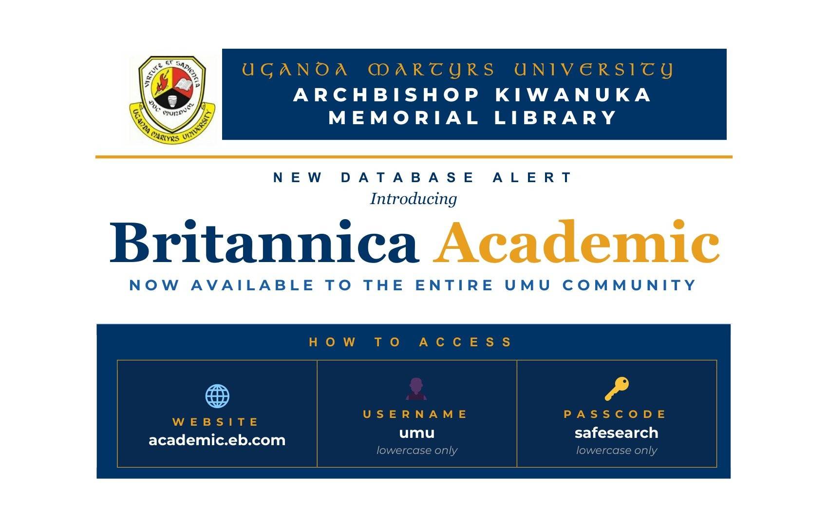 The Library of Uganda Martyrs University, referred to as the Archbishop Kiwanuka Memorial Library, was founded at the inception of the University in 1993. It is named in memory of the first African bishop, Late Archbishop Joseph Nakabaale Kiwanuka (1899-1966) because of his visionary thinking, especially for conceiving the idea of establishing a catholic University in Uganda.